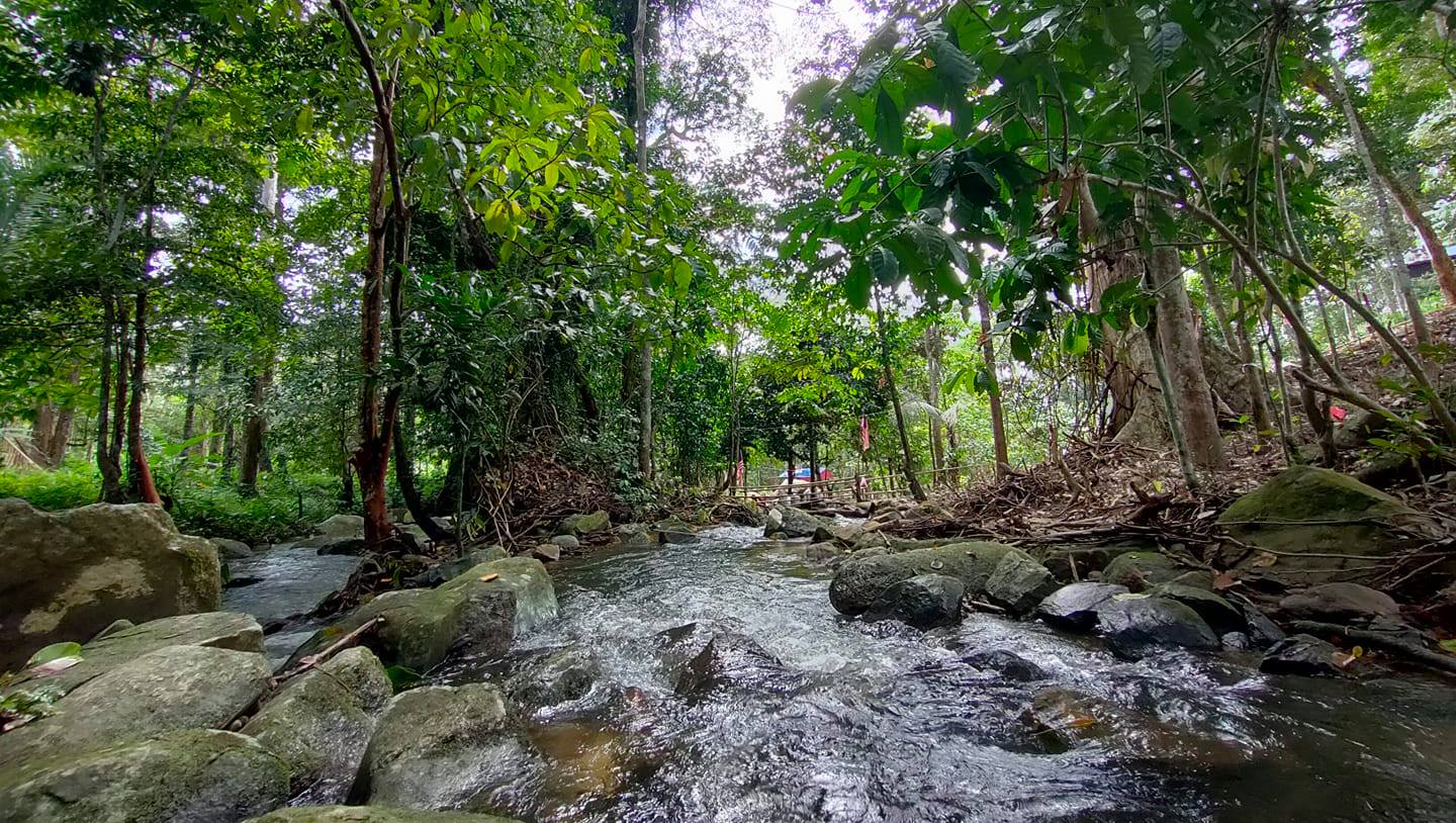 Kem Motivasi dan Rekreasi disempadani air sungai dari gunung yang nyaman.