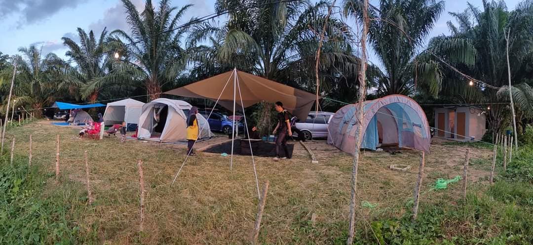 Tapak 20 x 20 kaki. Gap antara tapak 12 kaki. Boleh pasang flysheet untuk tempat memasak.