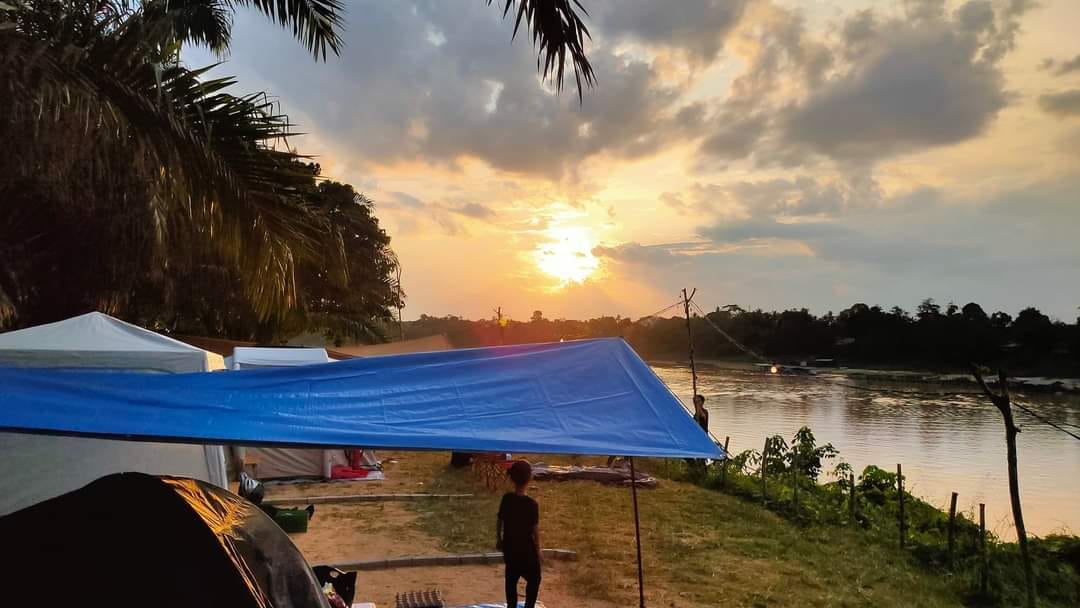Campsite di Temerloh, Pahang. Untuk sewa 4 tapak khemah menghadap sungai Pahang sambil menyaksikan matahari tenggelam yang indah.