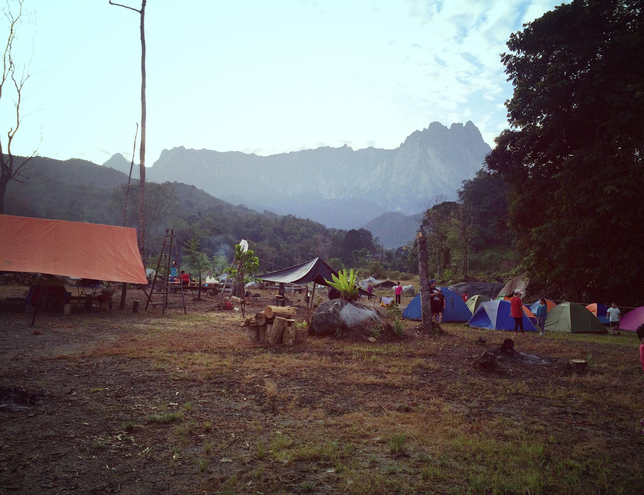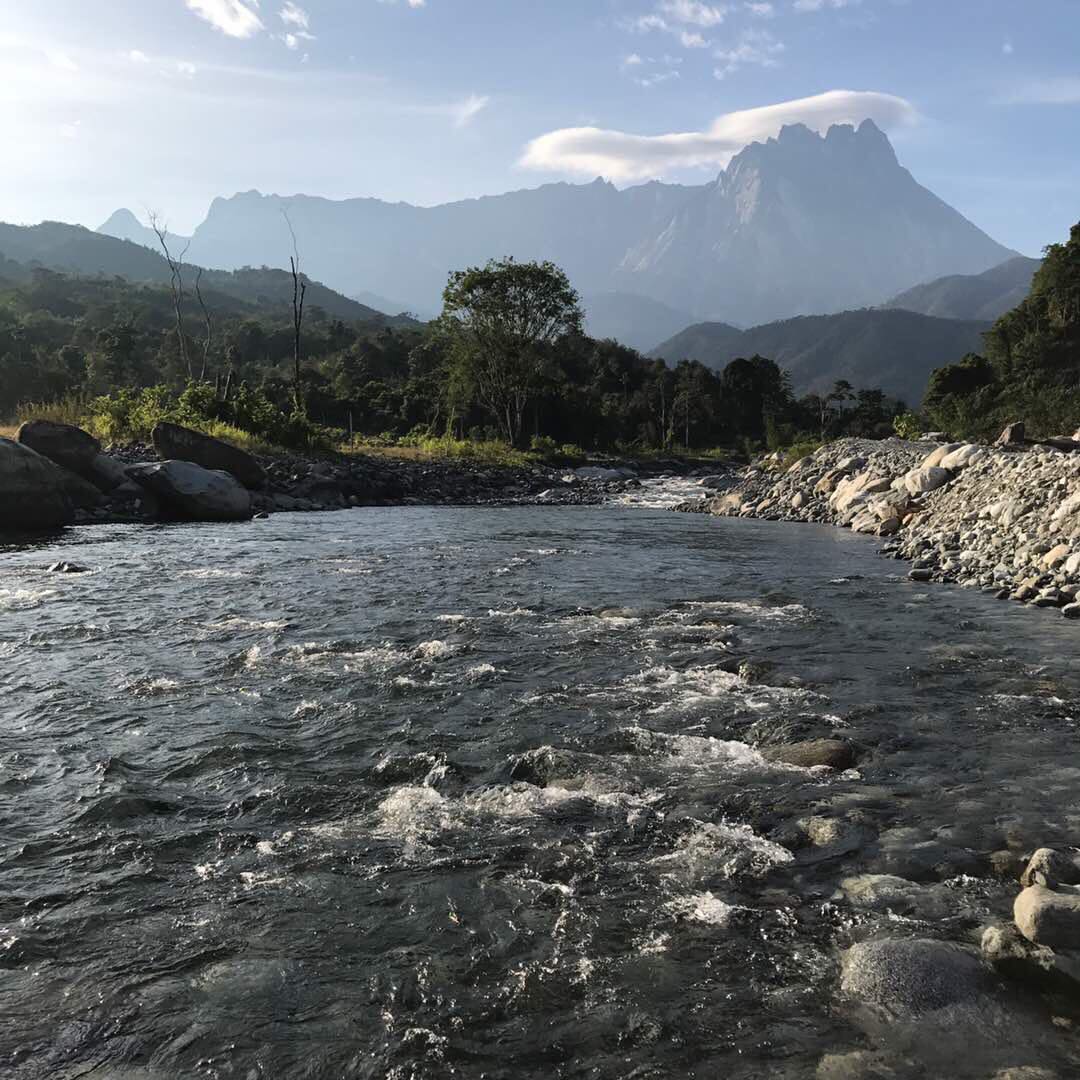Riverside campsite, homestay overlooking Mount Kinabalu. The river is flowing directly from Mount Kinabalu thus the crystal clear, cold, fresh and clean water. Spectacular view of Mount Kinabalu.